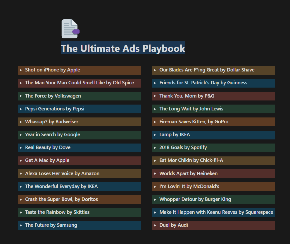 I spent a week analyzing the 26 greatest ads ever And wrote the "Ultimate Ads Playbook." This playbook will teach you more about marketing than any $100,000 marketing degree.